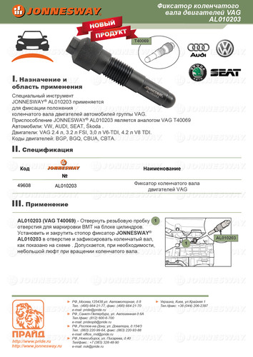 Фиксатор коленчатого вала двигателей VAG, код товара: 49608, артикул: AL010203