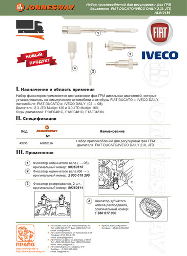 Набор приспособлений для регулировки фаз ГРМ двигателя FIAT DUCATO/IVECO DAILY 2.3L JTD, код товара: 49595, артикул: AL010186